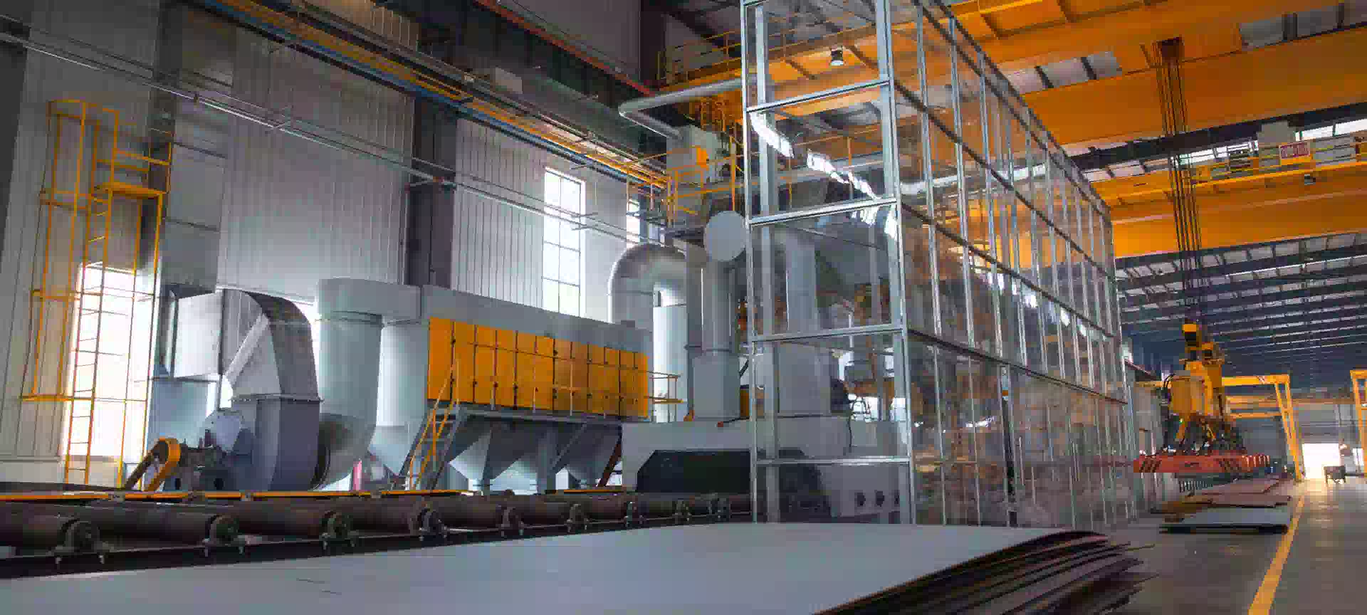 Our company has 5 QXY3000 and QYX6930 steel plate and profile pretreatment production lines (including shot blasting, painting, and drying). After casting (spraying) the steel, in order to prevent rust, the primer should be sprayed immediately within the specified time after the pre-treatment is completed. The steel used for the main structural components such as bridge frames and trolley frames is pre treated before entering the production workshop.