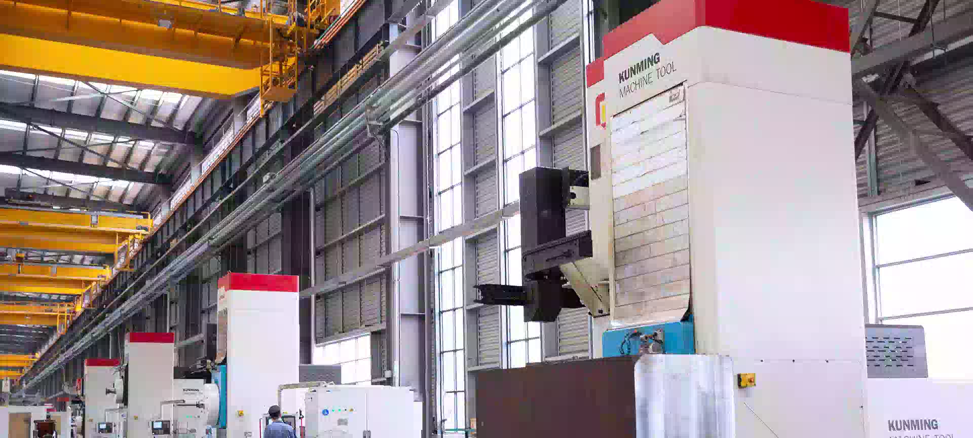 Large scale shadow data gantry milling machineOne CNC gantry milling machine XK2740 and two XK2420, with machining stroke ranges of 10000 × 4000x (300~1900) mm, 6000 × 2000 × 1200mm, and 5000 × 2000 × 1200mm respectively, are used for machining integral small frame, pulley beam, crossbeam, intermediate end beam, balance beam, etc.