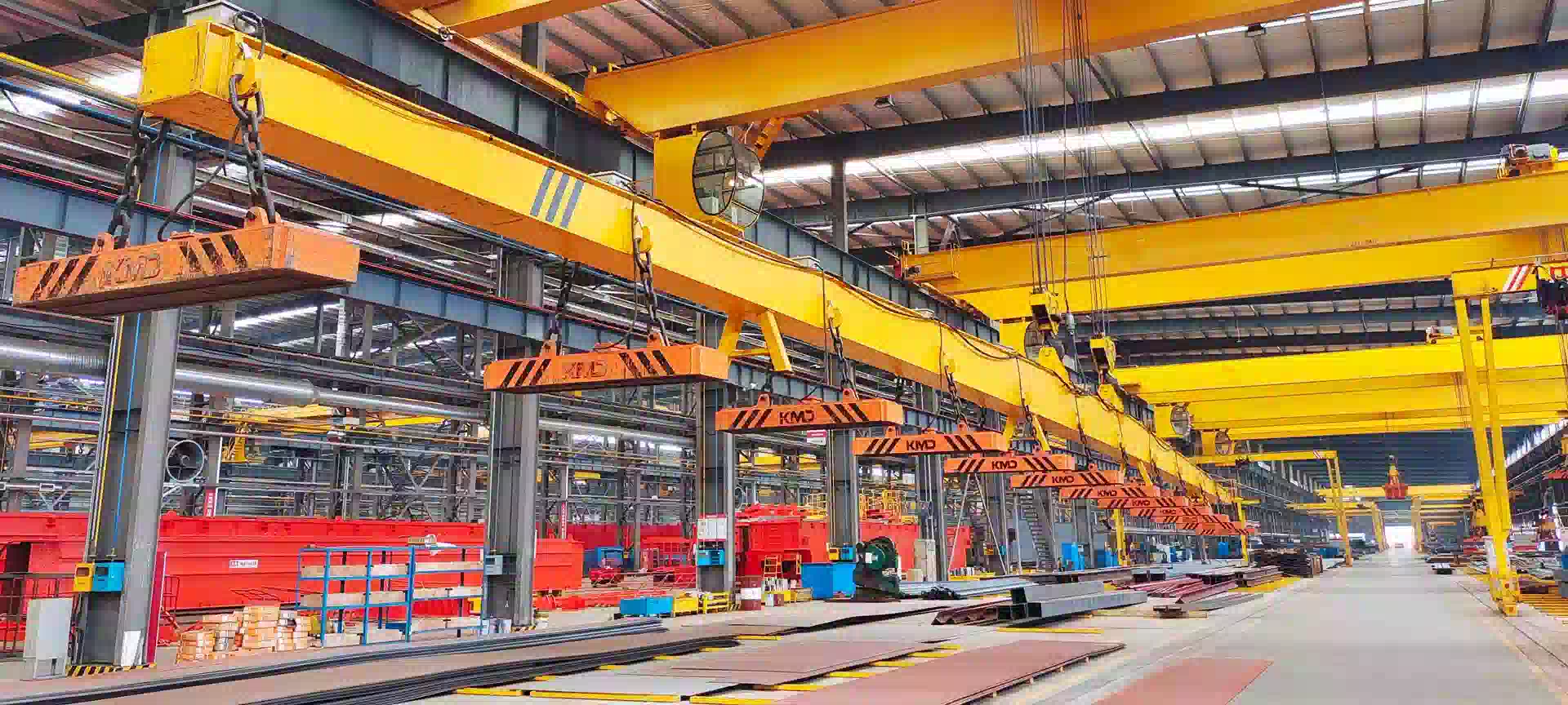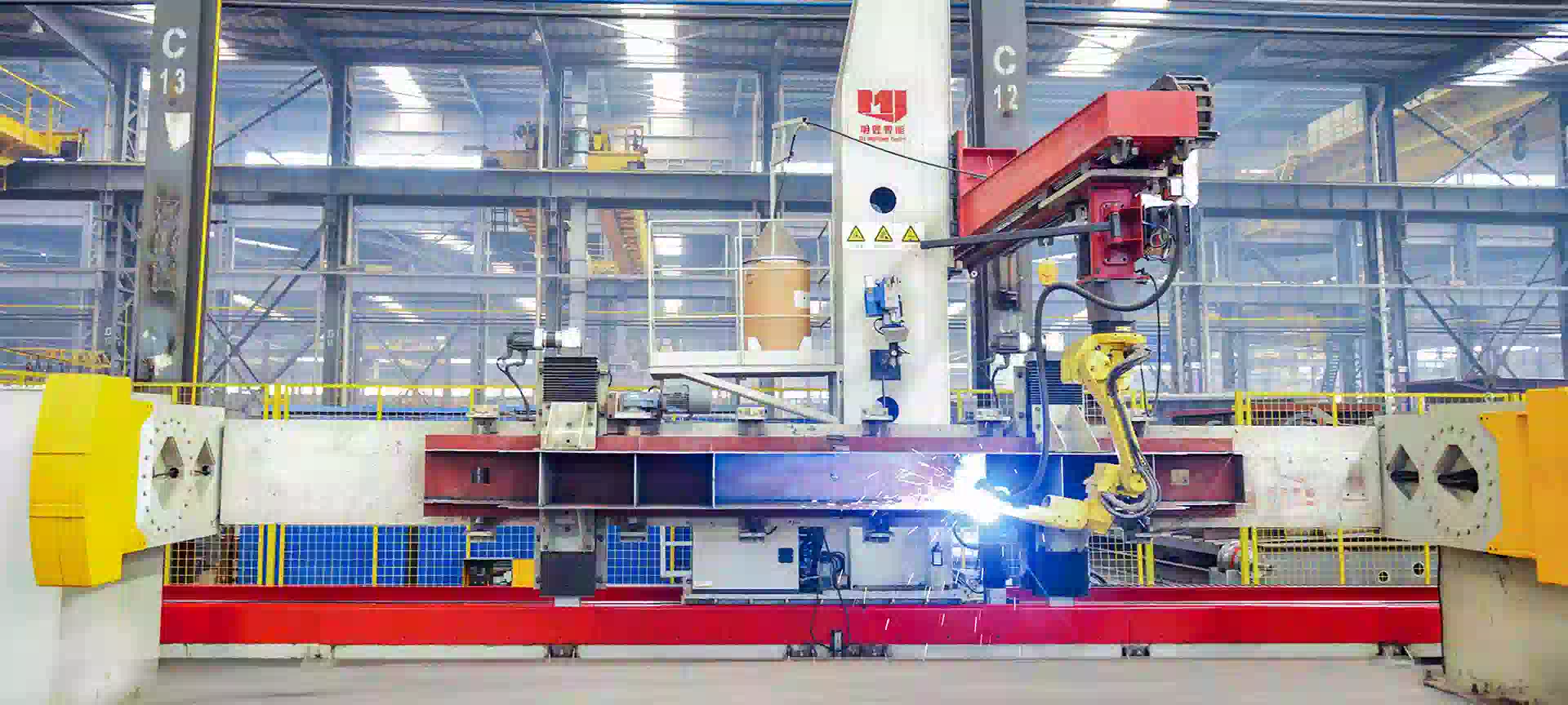 The welding process of the crane product adopts flexible digital electric permanent magnet lifting equipment and control system, which ensures high safety and reliability during lifting. To improve the quality of the welding process, combined with current 5G communication technology, robot welding technology is widely applied in components such as crane main beams, end beams, and trolleys, effectively improving welding efficiency and ensuring the overall manufacturing quality of the crane.