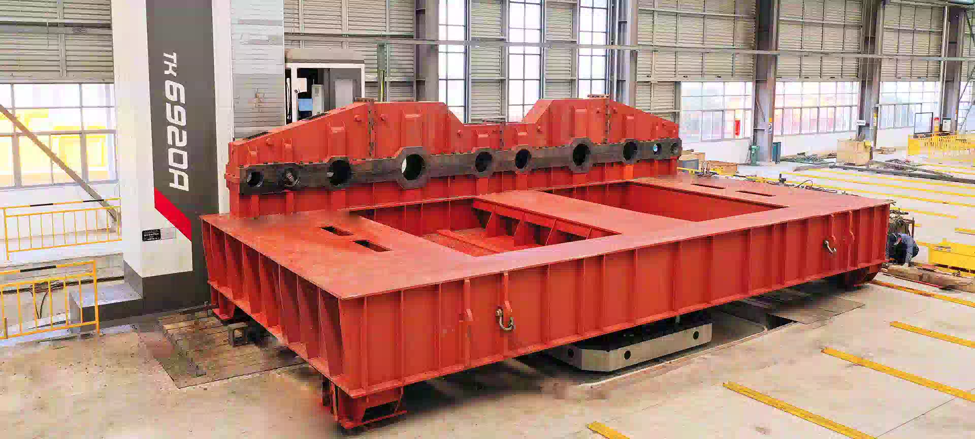 Heavy duty CNC floor milling machine bedKorig has one heavy-duty CNC floor milling machine TK6926J, two TK6920A, and one TK6916A with the Spanish FAGOR8055 CNC system. It can meet the overall processing of various tonnage crane small frames, end beams, and crossbeams, as well as other large structural components such as balance beams, rotating hanging beams, crossbeams, and super large door seats for large gantry cranes