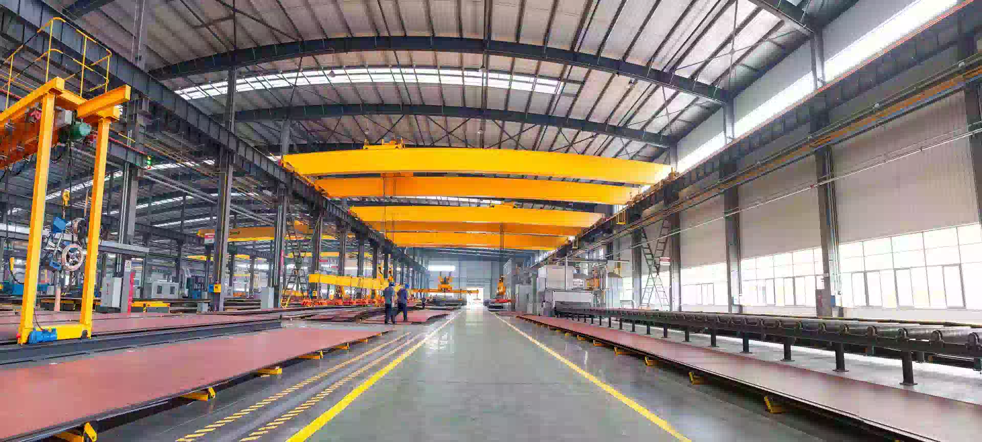 Double gun gantry welding centerThe company has multiple double gun gantry submerged arc welding machines for welding the outer longitudinal seams of main beams and end beam box type structural components. The welding of the main beams adopts the double wire welding method. It is the first in China to develop a crane arch parabolic mechanical weld seam tracking automated welding process equipment, achieving fully automated welding processes for crane curves and variable cross-sections