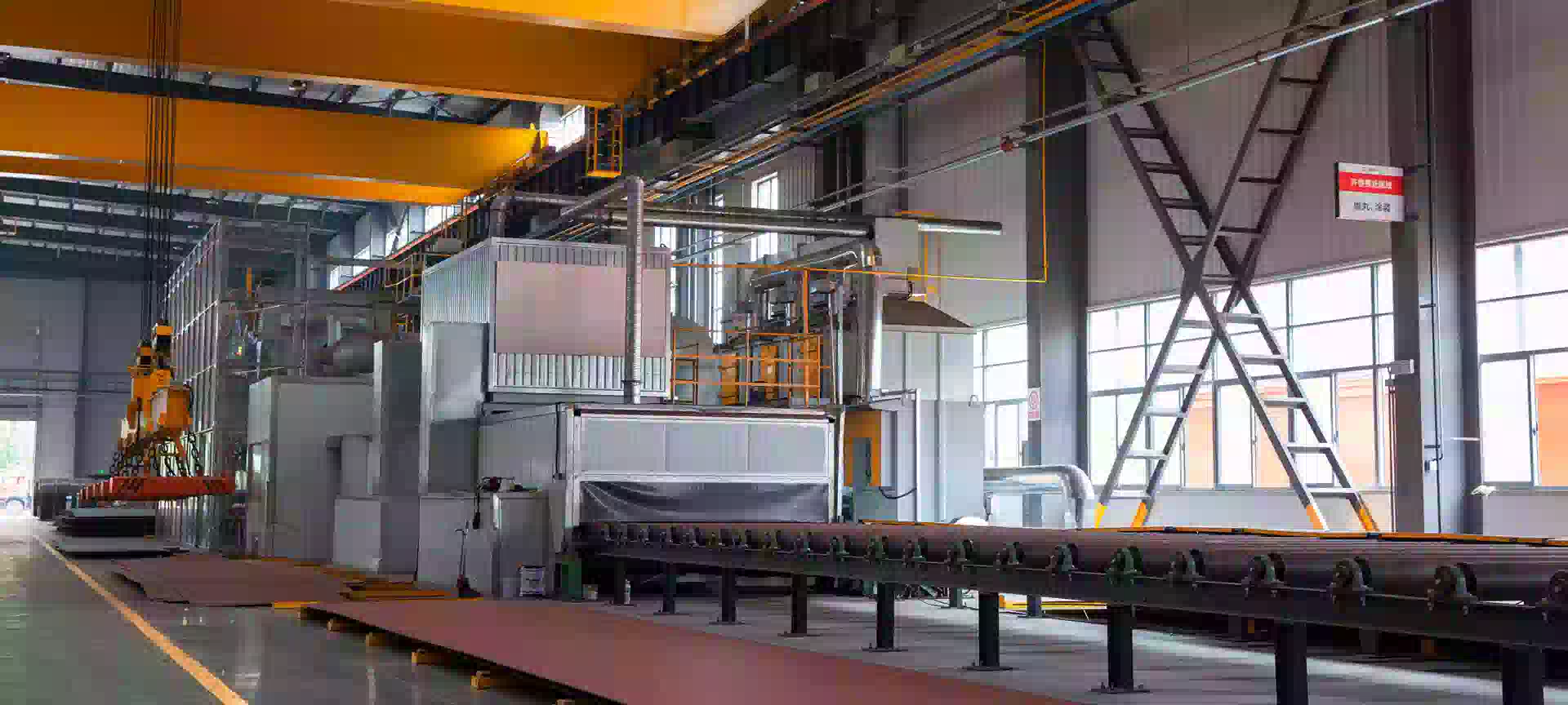 Our company has 5 QXY3000 and QYX6930 steel plate and profile pretreatment production lines (including shot blasting, painting, and drying). After casting (spraying) the steel, in order to prevent rust, the primer should be sprayed immediately within the specified time after the pre-treatment is completed. The steel used for the main structural components such as bridge frames and trolley frames is pre treated before entering the production workshop.